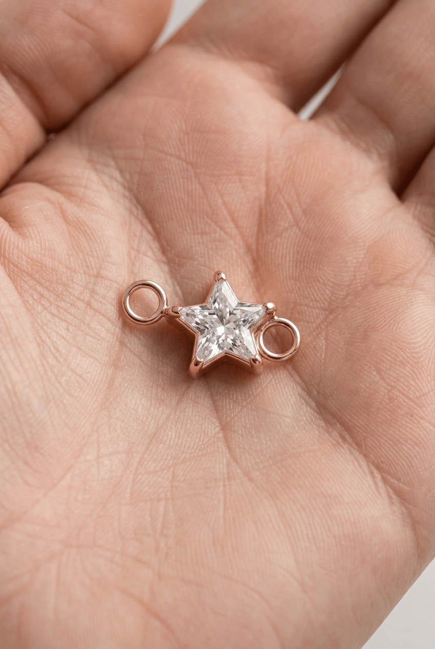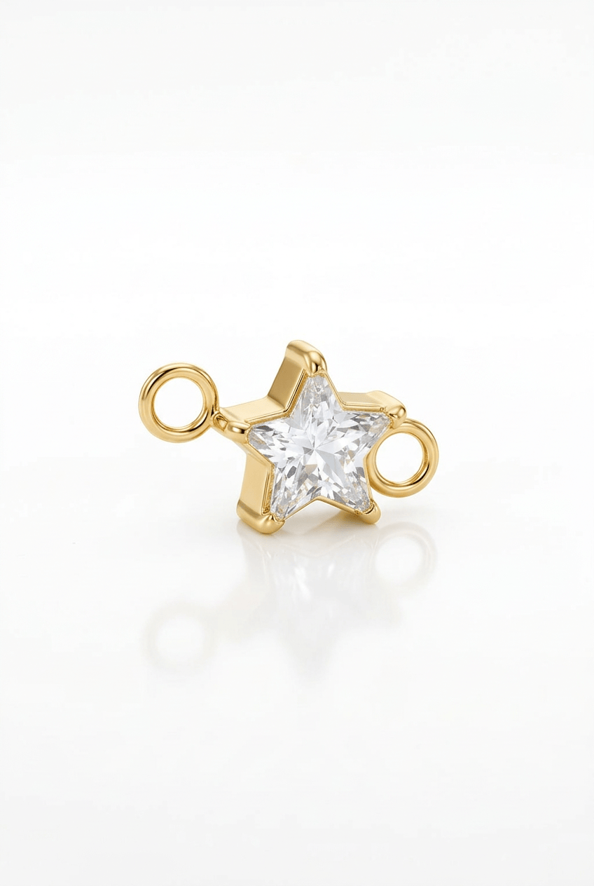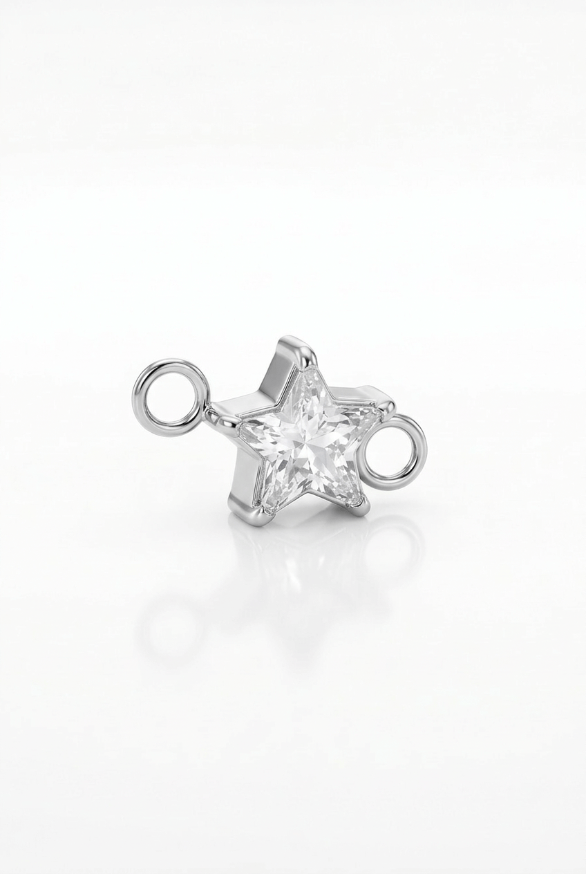 Unser funkelnder Stern-Charm setzt ein strahlendes Highlight an deinem permanenten Armband oder deiner Halskette. Der facettierte Stein sorgt für ein elegantes Glitzern, während die klare Sternform deinem Look eine besondere, verspielte Note verleiht.