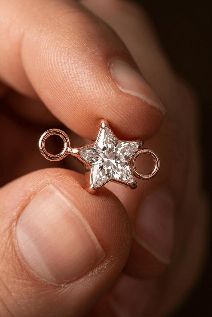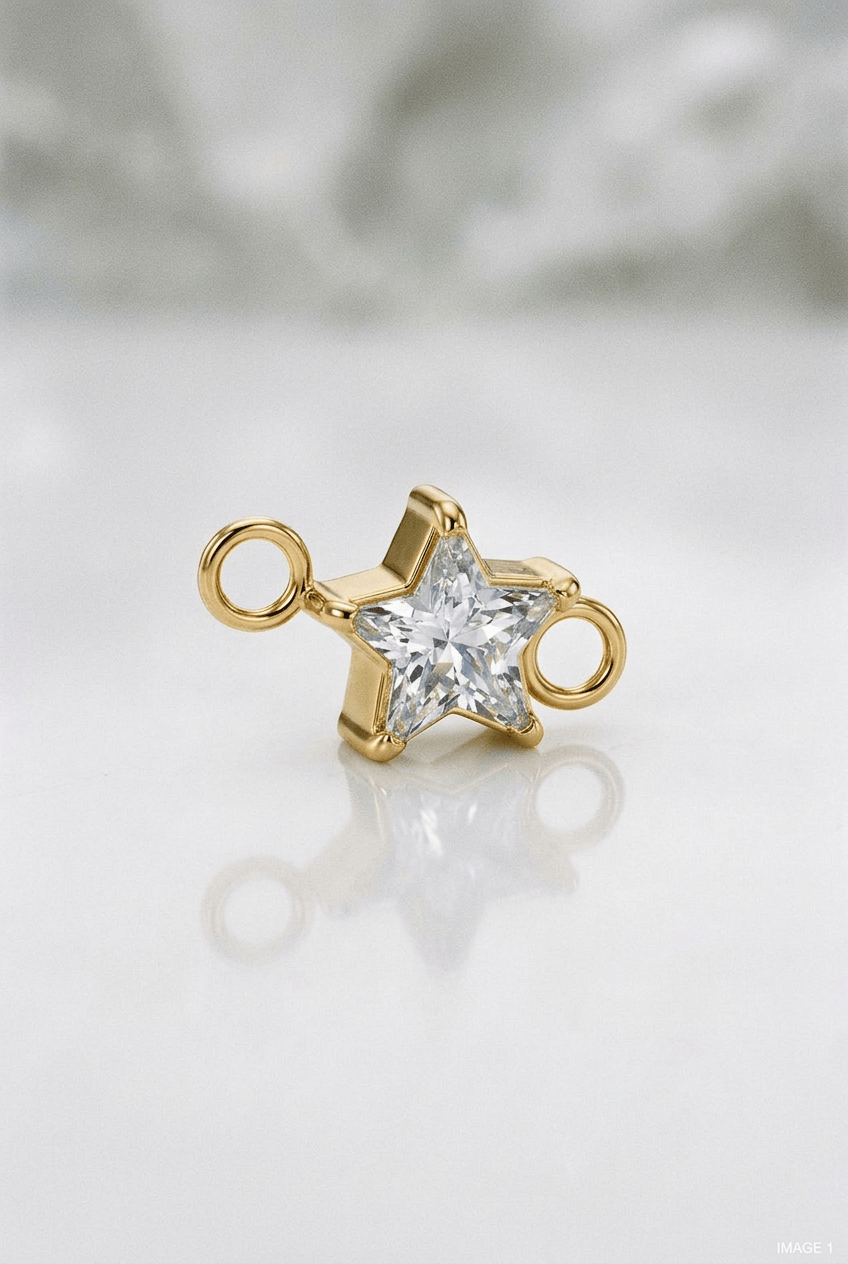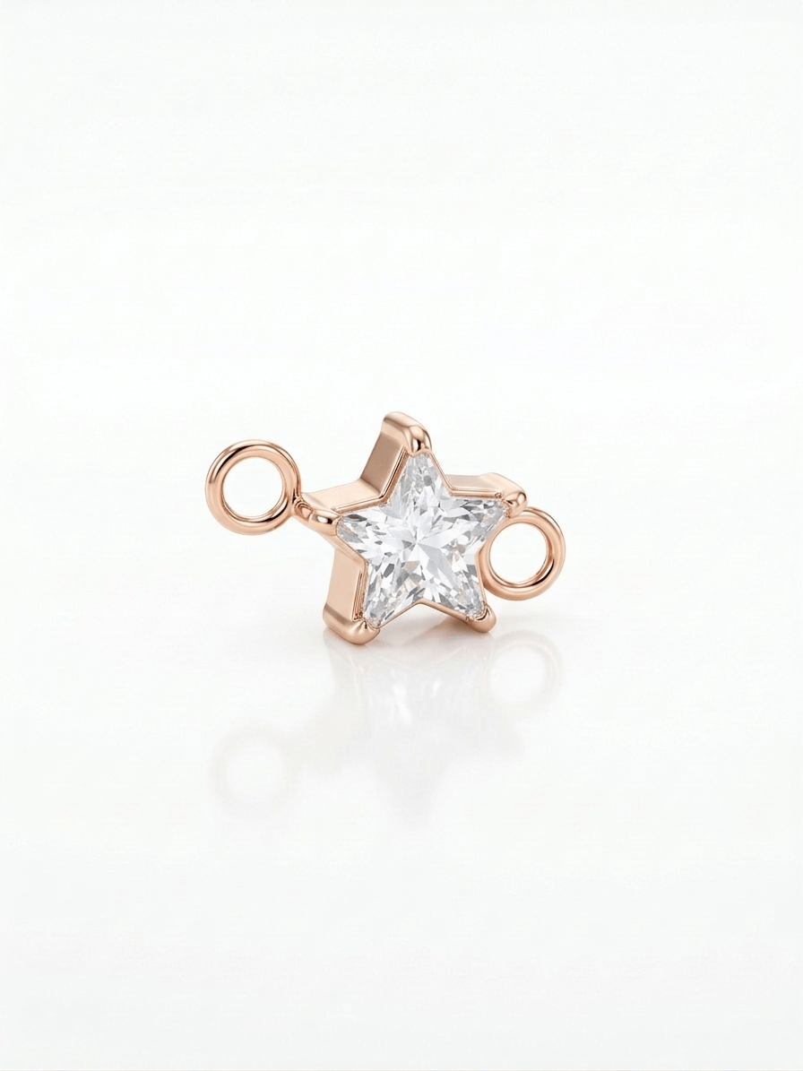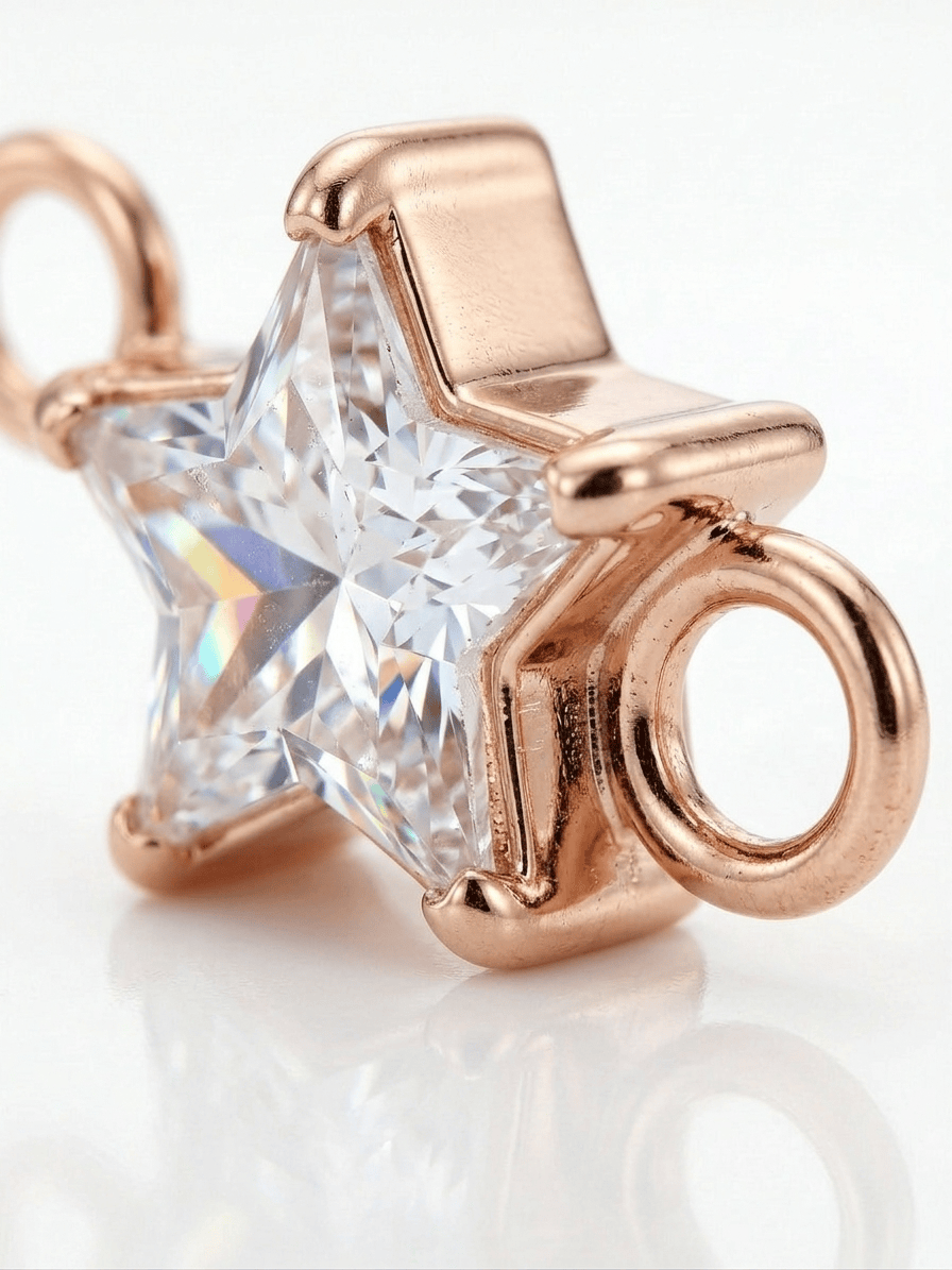 Unser funkelnder Stern-Charm setzt ein strahlendes Highlight an deinem permanenten Armband oder deiner Halskette. Der facettierte Stein sorgt für ein elegantes Glitzern, während die klare Sternform deinem Look eine besondere, verspielte Note verleiht.